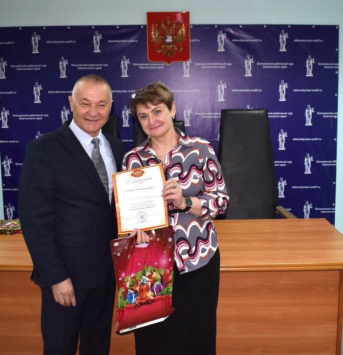 Общее собрание коллектива Елизовского районного суда Камчатского края прошло 29 декабря 2025 года. С поздравительной речью выступил председатель суда Николай Дмитриевич Буткин. Он поздравил коллег с наступающим Новым годом и Рождеством, поблагодарил за работу и пожелал всем крепкого здоровья, достижения всех намеченных целей и личного счастья. На собрании были награждены победители смотра-конкурса на лучшее праздничное новогоднее оформление рабочих кабинетов: Павленко Екатерина Игоревна, Гевеленко Марина Викторовна, Белоусова Наталья Владимировна, Зафесова Данна Аслановна, Козбанова Анастасия Олеговна, Миц Ольга Игоревна, Графов Иван Валерьевич, Белобородова Анастасия Александровна, Орехова Алена Владимировна, Пустынцева Юлия Владимировна, Камагорова Дарья Николаевна, Камынина Елена Петровна, Ищик Екатерина Степановна, Тугушева Евгения Владимировна, Максимова Анастасия Валерьевна, Брилева Виктория Олеговна, Титова Мария Михайловна, Овсянникова Ксения Григорьевна. Дипломы и сладкие подарки победителям конкурса вручил председатель суда. От всей души поздравляем победителей и благодарим всех участников за отзывчивость, за труд, за новые творческие идеи и вдохновение. Пресс-служба Елизовского районного суда Скобелкина Татьяна Сергеевна Тел.: (415-31) 6-45-60 E-mail: elizovsky.kam@sudrf.ru |
